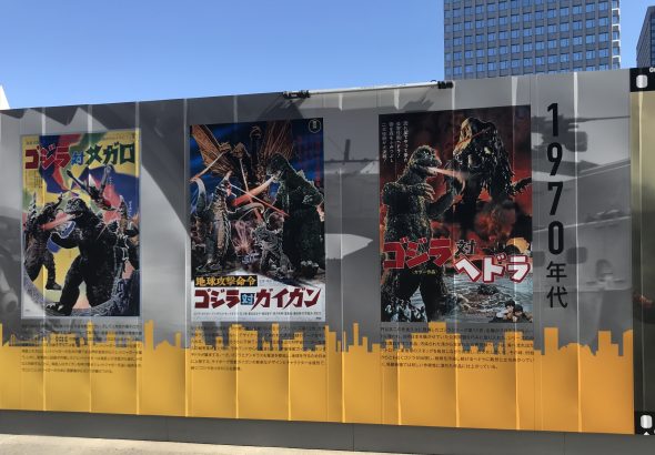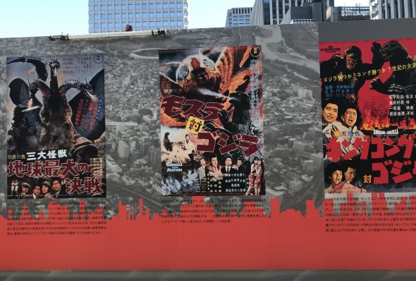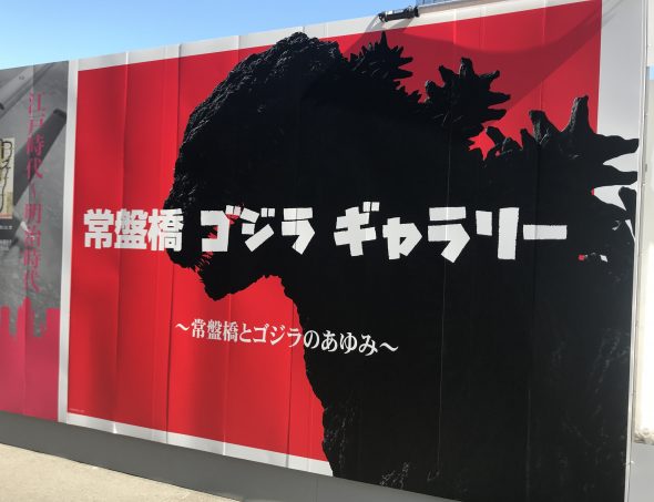 JR東京駅の日本橋口を出て、当店に向かう途中が現在では大規模な開発工事中なのですが、工事のフェンスにゴジラのギャラリーになっています。