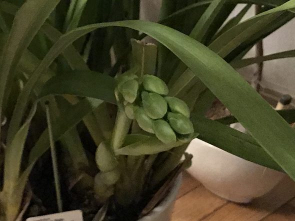 シンビジウムの蕾がかなりふくらんできました