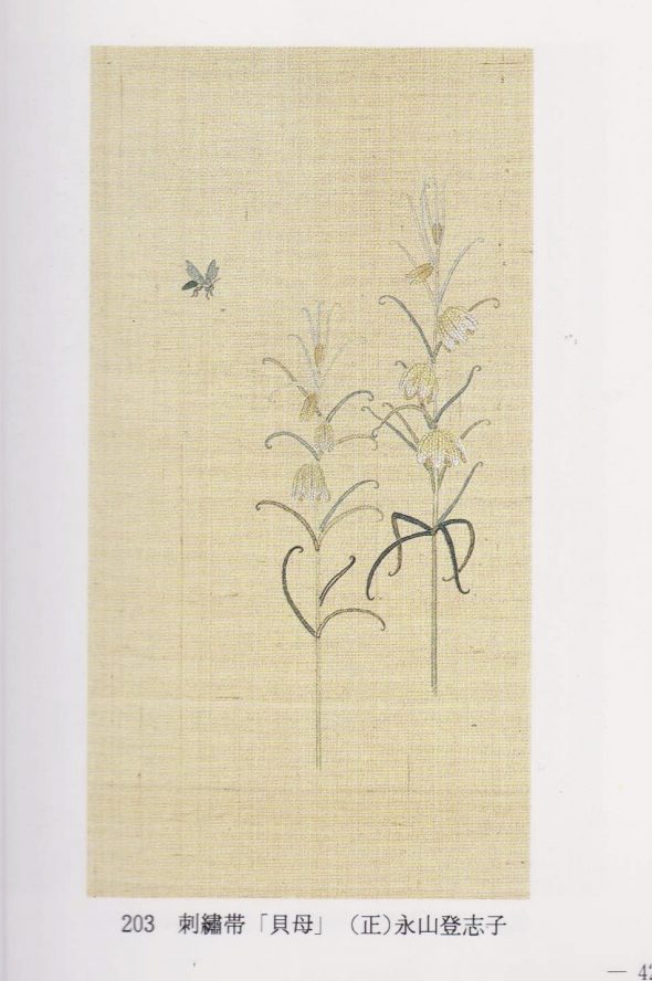先日シルク博物館に寄贈した作品の中にも貝母をデザインした作品がありました。