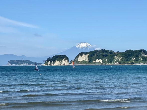 材木座海岸から見た富士山と江ノ島。。。