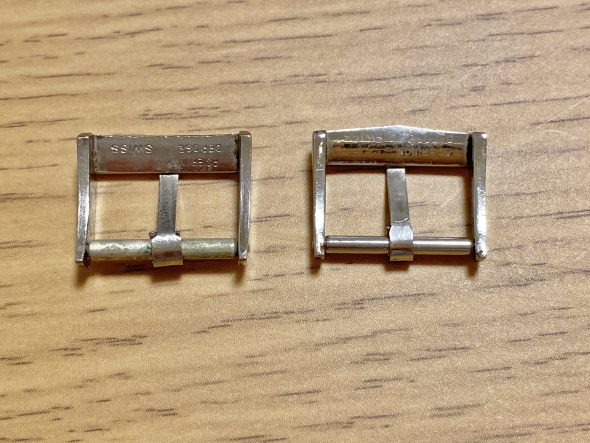 左が40年代後期のスティールバックルで右が50年代後期の物。