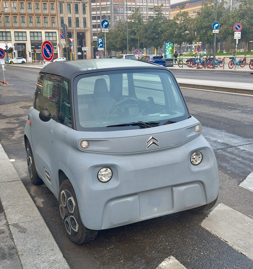 ミラノでよく目にしたシトロエンの小型EV。アミという名前らしいです。