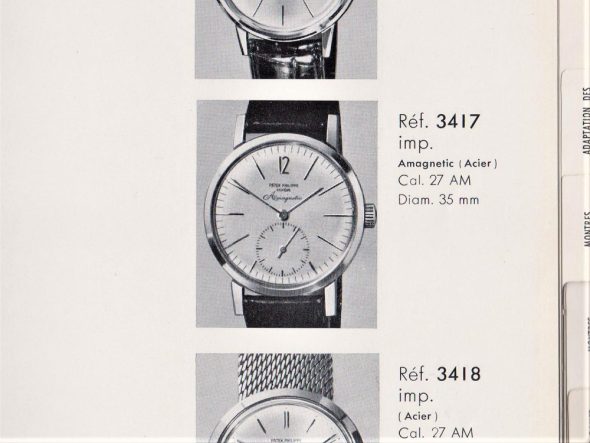 Ref.3417は耐磁機能を持った時計で、1958年に既存の12-400ムーブメントに耐磁性のある保護キャップをケース側とムーブメント側に被せる事で耐磁性を持つ時計としてゴールドケースのref.2570等と共に販売を開始されました。その後1960年になり、新たに耐磁性のある金属を使用したムーブメントとして開発された27AM-400を使用して、おおよそ1970年頃迄販売されました。